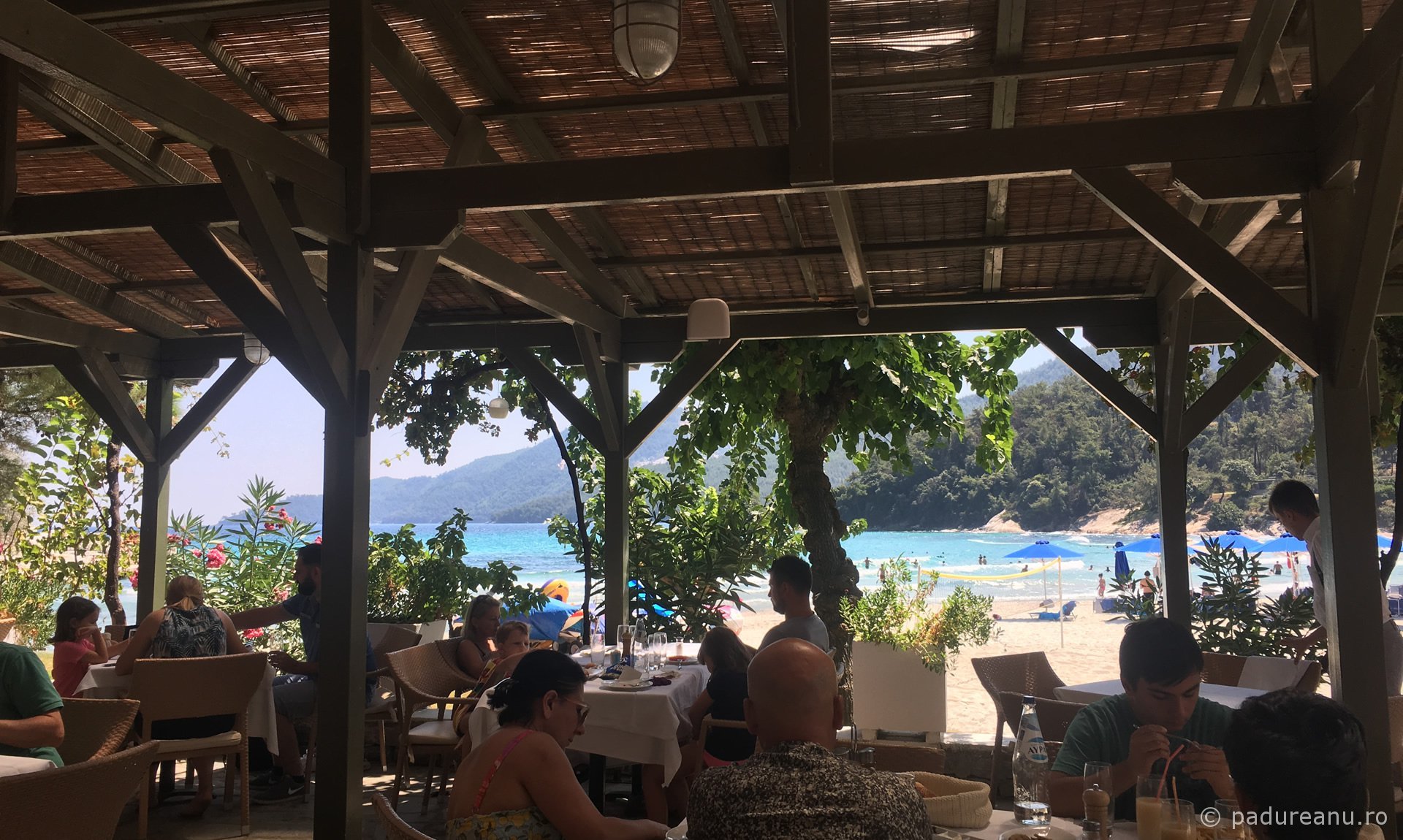 Now, regarding the possibilities of dining, at the left end of the beach there is a “tavern”, in fact a clean, covered terrace, belonging to the same complex, probably included in the same management. However, the staff refers to this place as if it weren’t a part of the complex, which surprised us a little. Although the complex had a restaurant, which also included a terrace, it was empty and unused.