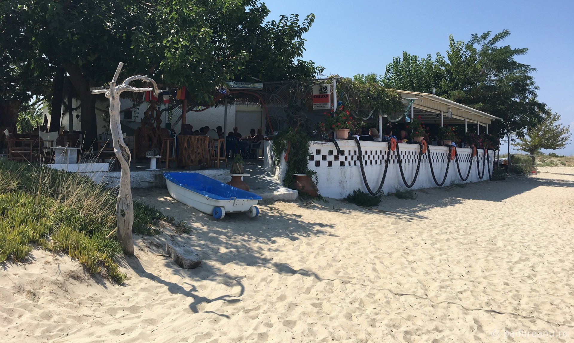 The surprise was extremely pleasant. Being located in front of a fishermen’s village, quite a bit affected by the mass tourism, the beach reminded me most of Vama Veche from my university years. The same long beaches, covered here and there with algae and dried firewood, the fine sand, few and polite people… everything reminds you of a world still untouched by the “values” of mass tourism.